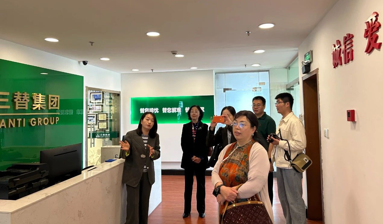 4月15日,南京師范大學(xué)教授、金陵女子學(xué)院前任院長(zhǎng)、家政學(xué)碩士點(diǎn)負(fù)責(zé)人、江蘇省家政學(xué)會(huì)理事長(zhǎng)趙媛,南京師范大學(xué)教授、江蘇家政發(fā)展研究院執(zhí)行院長(zhǎng)、江蘇省家政學(xué)會(huì)常務(wù)副理事長(zhǎng)兼秘書長(zhǎng)熊筱燕 ,南京師范大學(xué)金陵女子學(xué)院教師、博士趙麗芬等一行蒞臨三替集團(tuán)參觀調(diào)研。三替集團(tuán)工會(huì)常務(wù)副主席、婦聯(lián)主席何迪汝等相關(guān)人員陪同參觀并進(jìn)行交流。