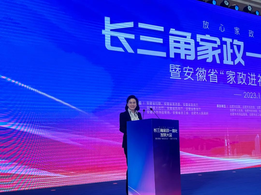 11月8日,長三角家政一體化發展大會在安徽順利召開。今年由安徽省擔任長三角家政服務一體化發展聯盟輪值主席單位。浙江省家庭服務業協會會長、三替集團董事長陶曉鶯出席此次會議并作主題演講。