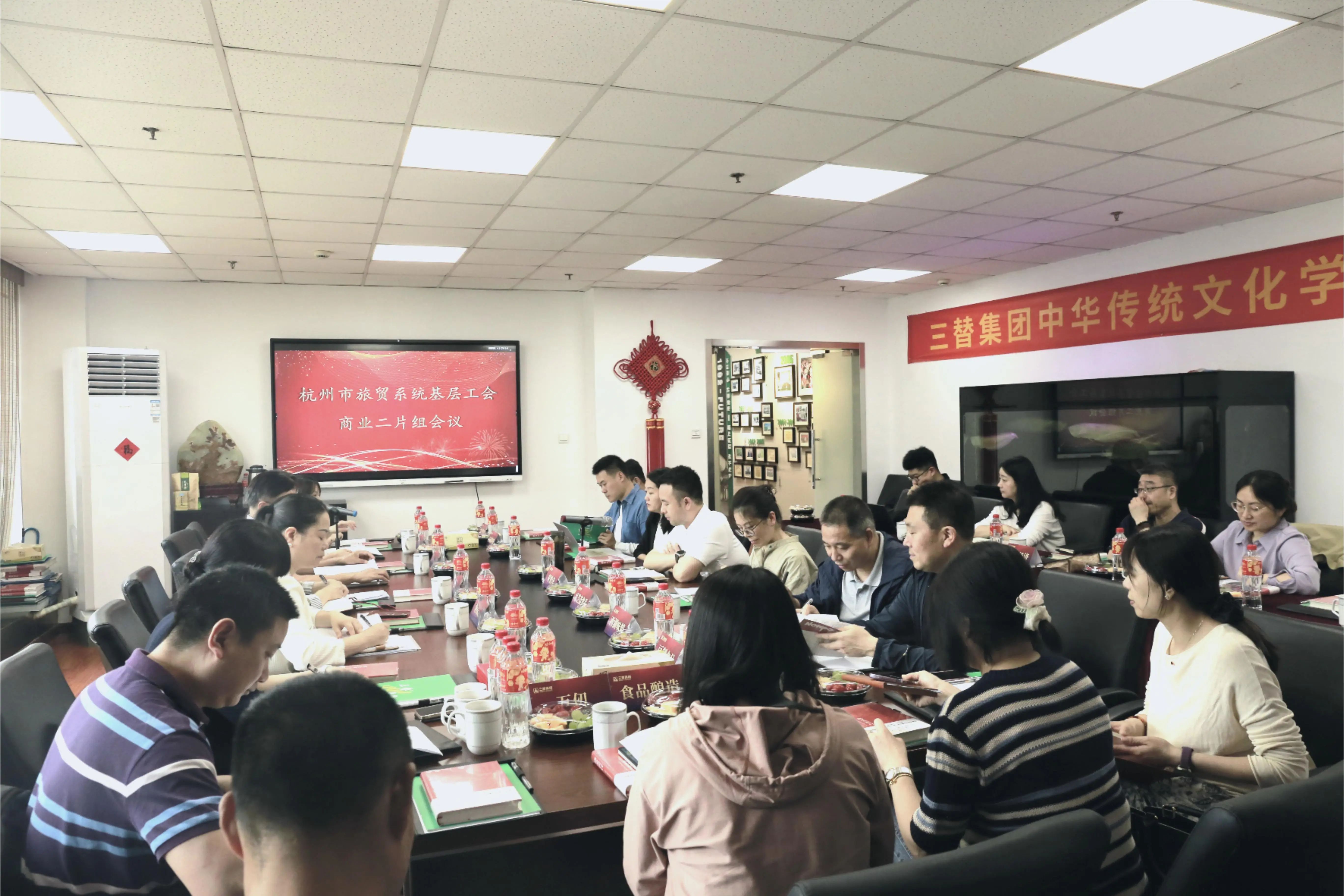 6月5日,杭州市旅貿系統基層工會商業二片組會議在三替集團順利召開,杭州市旅貿工會副主任盛薏、副主任范棕蓮、二級調研員許茂校及18家單位工會主席參加了本次會議,三替集團總經理黃恩澤,三替集團工會副主席何迪汝出席會議。