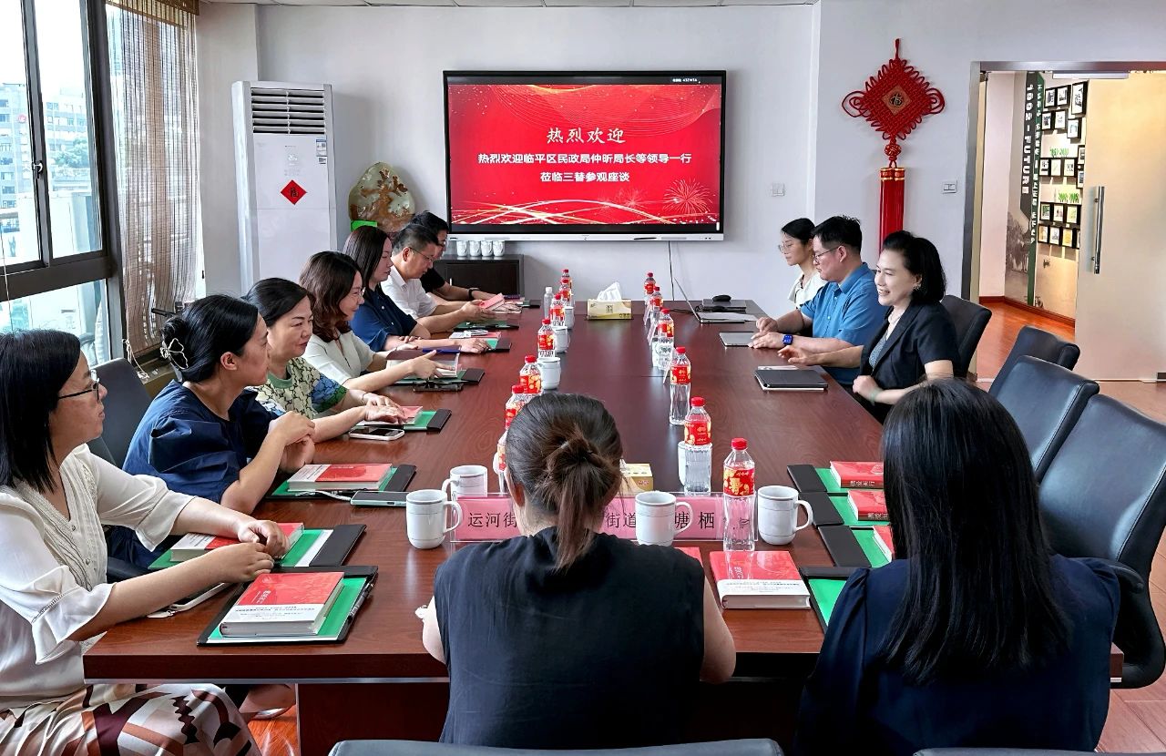 臨平區民政局黨委書記、局長仲昕等領導一行在完成對三替花園亭家政進社區網點的深入考察后,隨即前往三替集團總部進行參觀及座談交流。