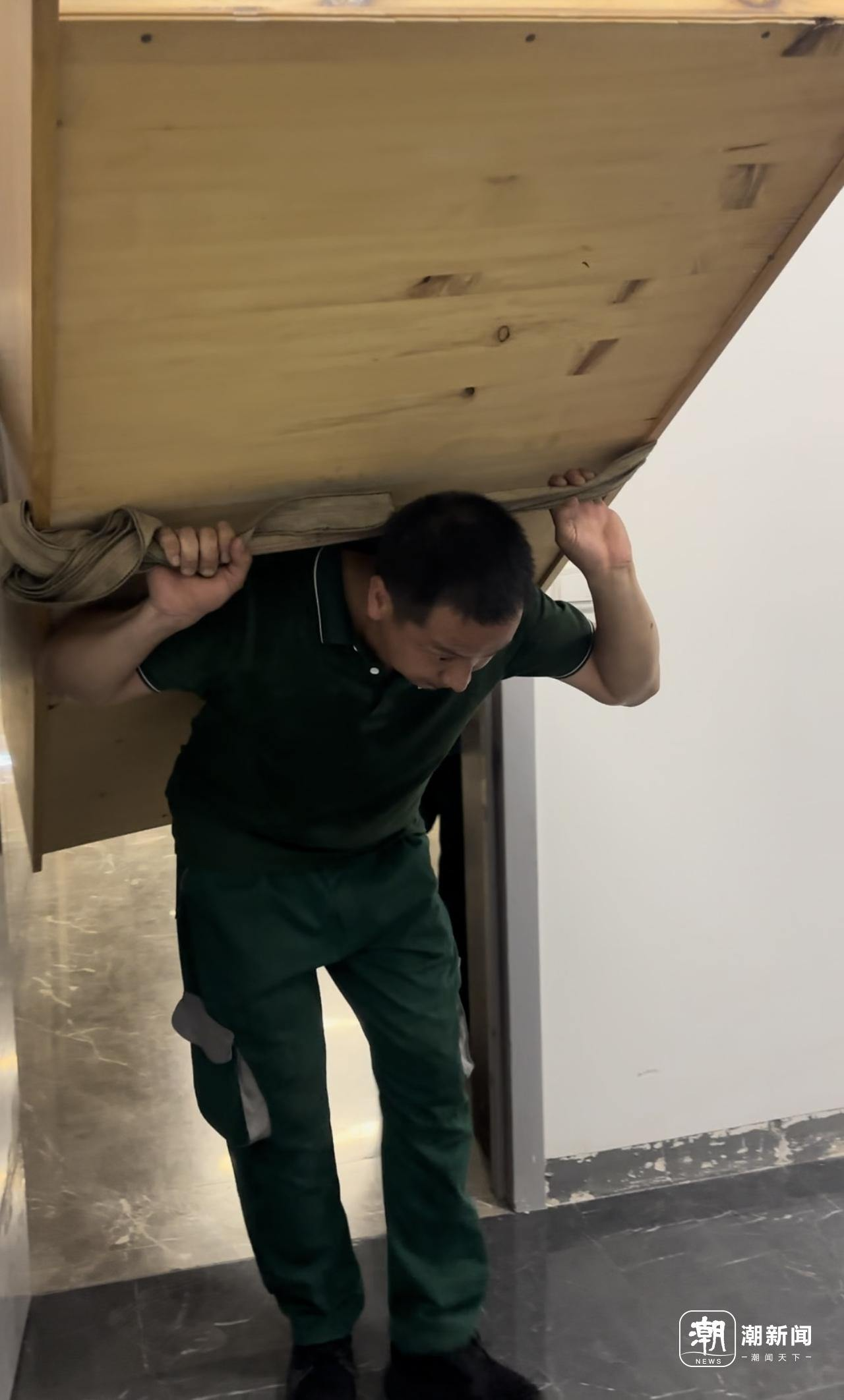 這一行,他已經干了10多年,知道一些要點。比如衣柜繩子要綁在肩膀齊平的位置,上樓梯時,手要向上撐,讓重量落在肩膀和兩手臂,而不是集中在后面,那樣體感會更重。