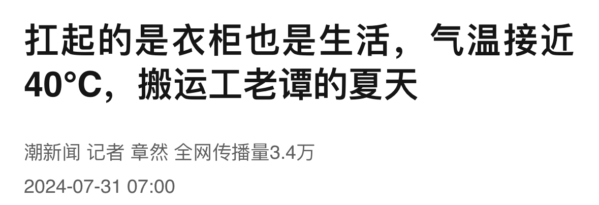 他說天氣越熱,搬運單子就越多,“有些搬家的,東西哪怕不多,這幾天太陽太大,他們受不了也會叫我們上門搬。”