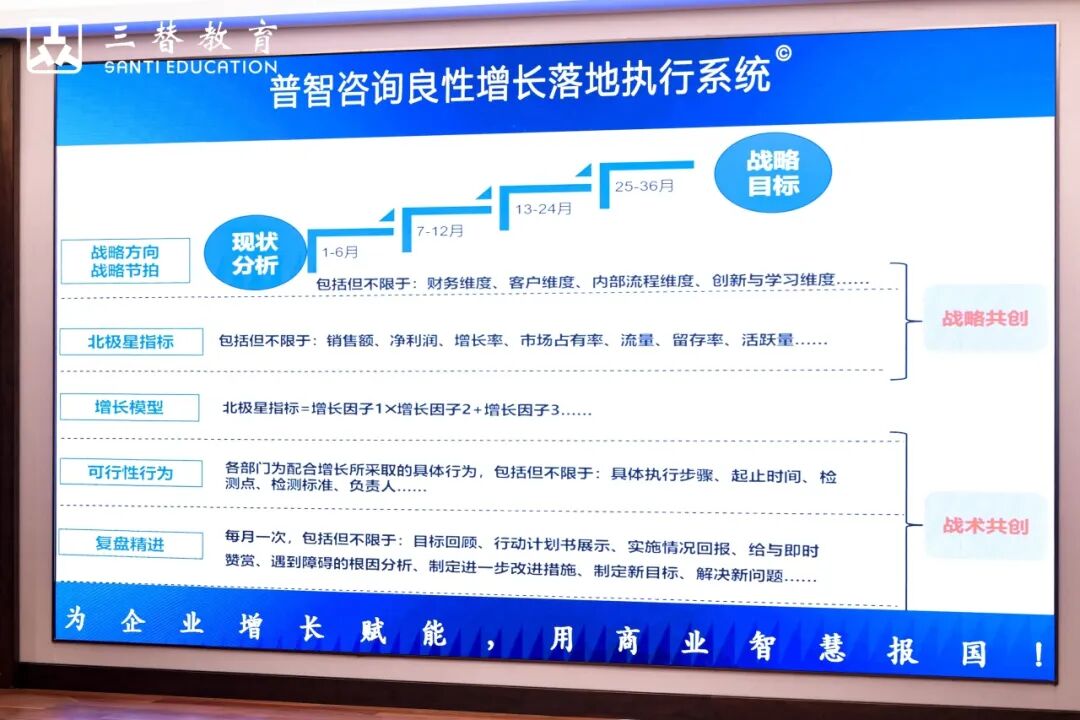 本次課程緊扣“良性增長”這一核心,劉百功博士從宏觀、中觀、微觀經濟轉型切入,系統講解了企業如何在“增速換擋”時代重構增長邏輯,并深度解析了成熟市場下的三大增長戰略——搶占市場份額、第二曲線戰略、市場精細化戰略。通過企業良性增長的七大路徑——安索夫矩陣,以及企業良性增長的落地執行系統——北極星指標設定、增長因子的可行性行為設計等實用工具,幫助學員一步步拆解增長難題,構建可落地的執行系統。