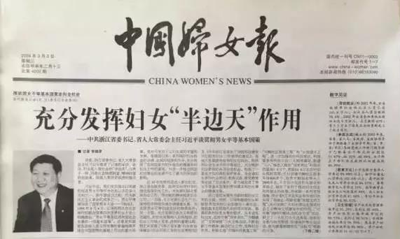 2004年3月3日,時任浙江省委書記、省人大常委會主任習近平就貫徹男女平等基本國策接受《中國婦女報》專訪
