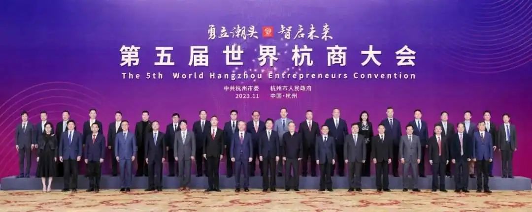 杭州市委副書記、市長姚高員等領導與“杰出杭商”等代表合影