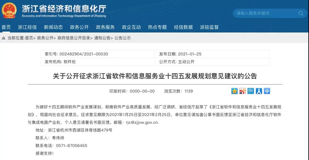 浙江省軟件和信息服務業(yè)“十四五” 發(fā)展規(guī)劃(征求意見稿)發(fā)布于:2021-02-24 -